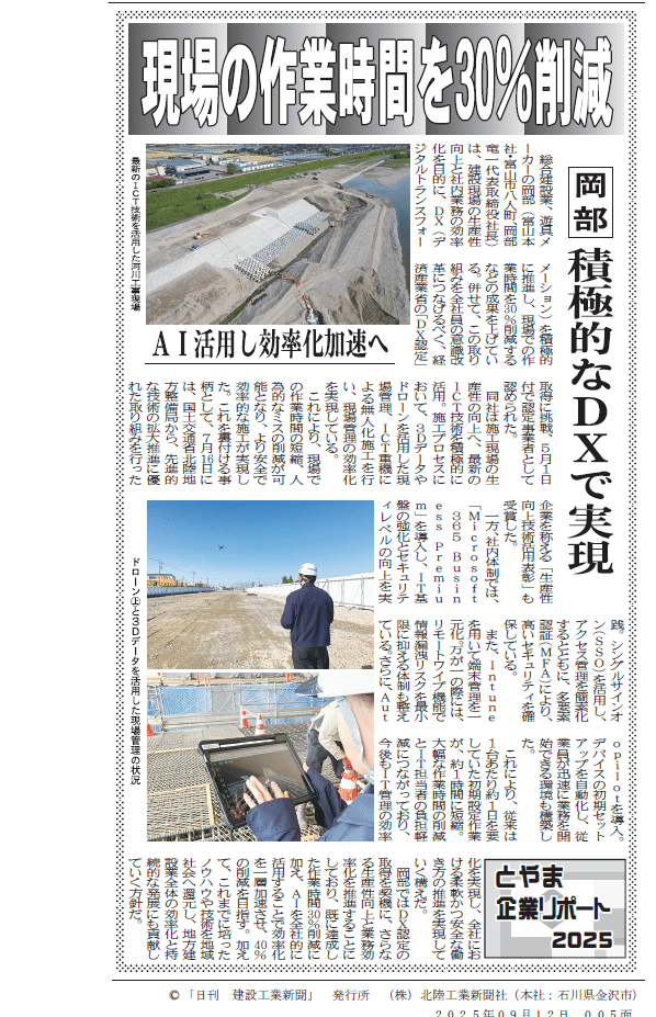 当社のDXに関する取り組みが、日刊建設工業新聞ならびに各種オンラインニュースメディアに掲載されました。