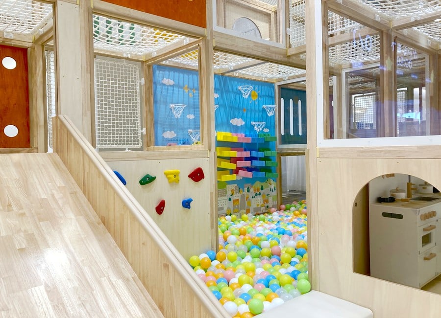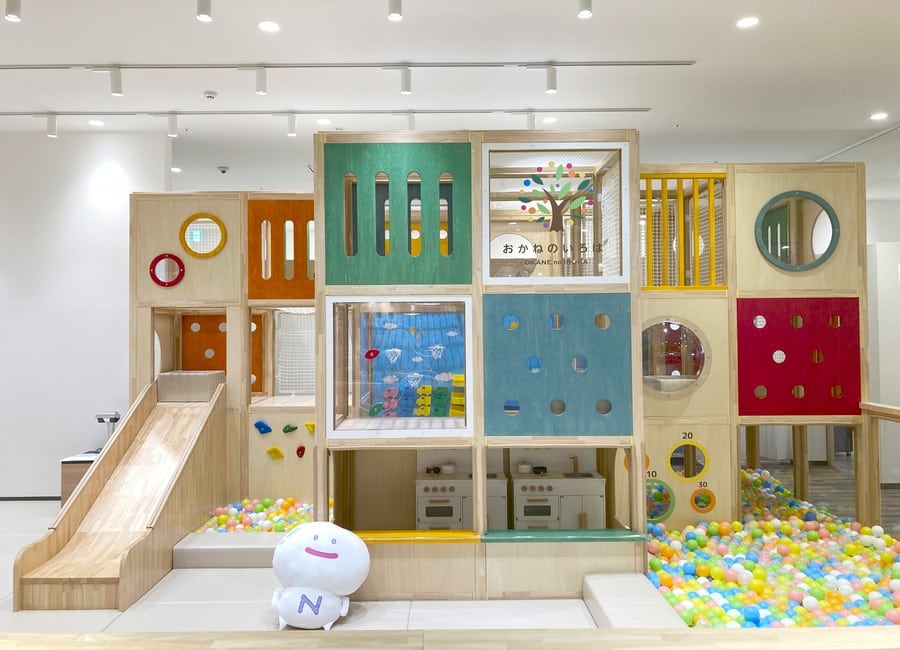 ご相談スペースに隣接するキッズコーナーへ木製遊具を設置しました。