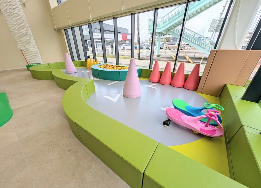外からも見えるキッズスペースは、安心感と開放感をうみだします。